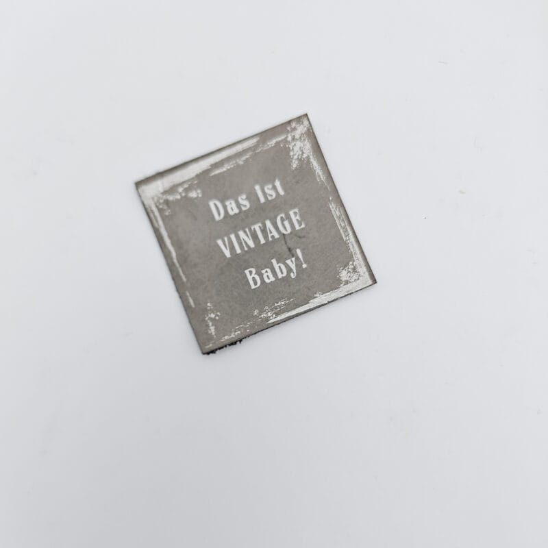 Du kannst die Kunstlederlabel „Das ist VINTAGE Baby!“ in verschiedenen Farben erwerben. Schwarz, Creme, Rustikal, Braun, grau.