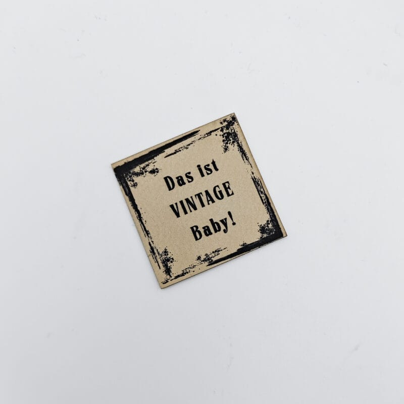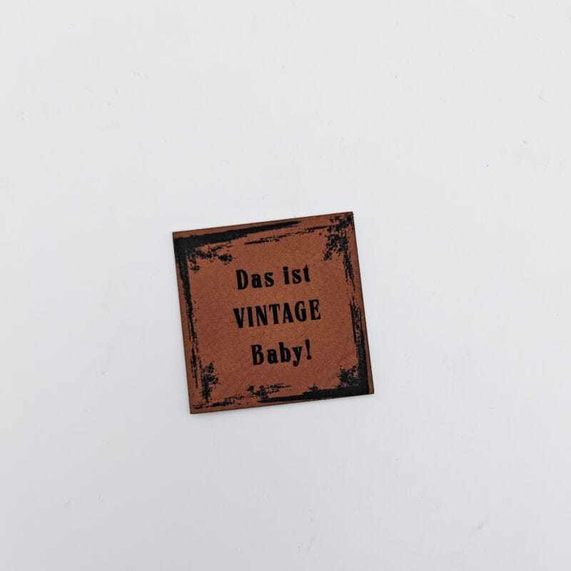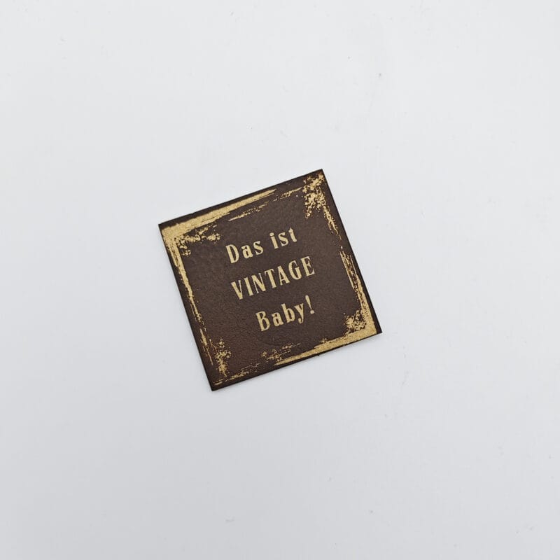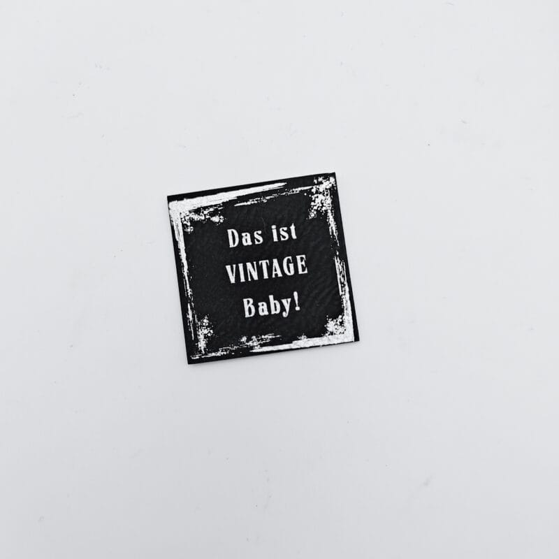 Kunstlederlabel „Das ist VINTAGE Baby!“ aus hochwertigem 100% Kunstleder (PU) gefertigt und haben eine Größe von 4 cm x 4 cm, perfekt zum Aufnähen auf verschiedenste Kleidungsstücke. Das „Das ist VINTAGE Baby!“ Kunstlederlabel bringt eine persönliche Note in jegliche DIY-Projekte und ist ein echter Hingucker. Durch das strapazierfähige Material bleiben die Labels lange schön und machen jedes selbstgemachte Kleidungsstück zu einem Unikat. Egal ob auf selbst genähten Taschen, T-Shirts oder Jacken – die Kunstleder Labels sind vielseitig einsetzbar und verleihen jedem Stück das gewisse Etwas. Entdecke jetzt die hochwertigen Kunstlederlabel und werte deine selbstgemachten Kreationen auf.