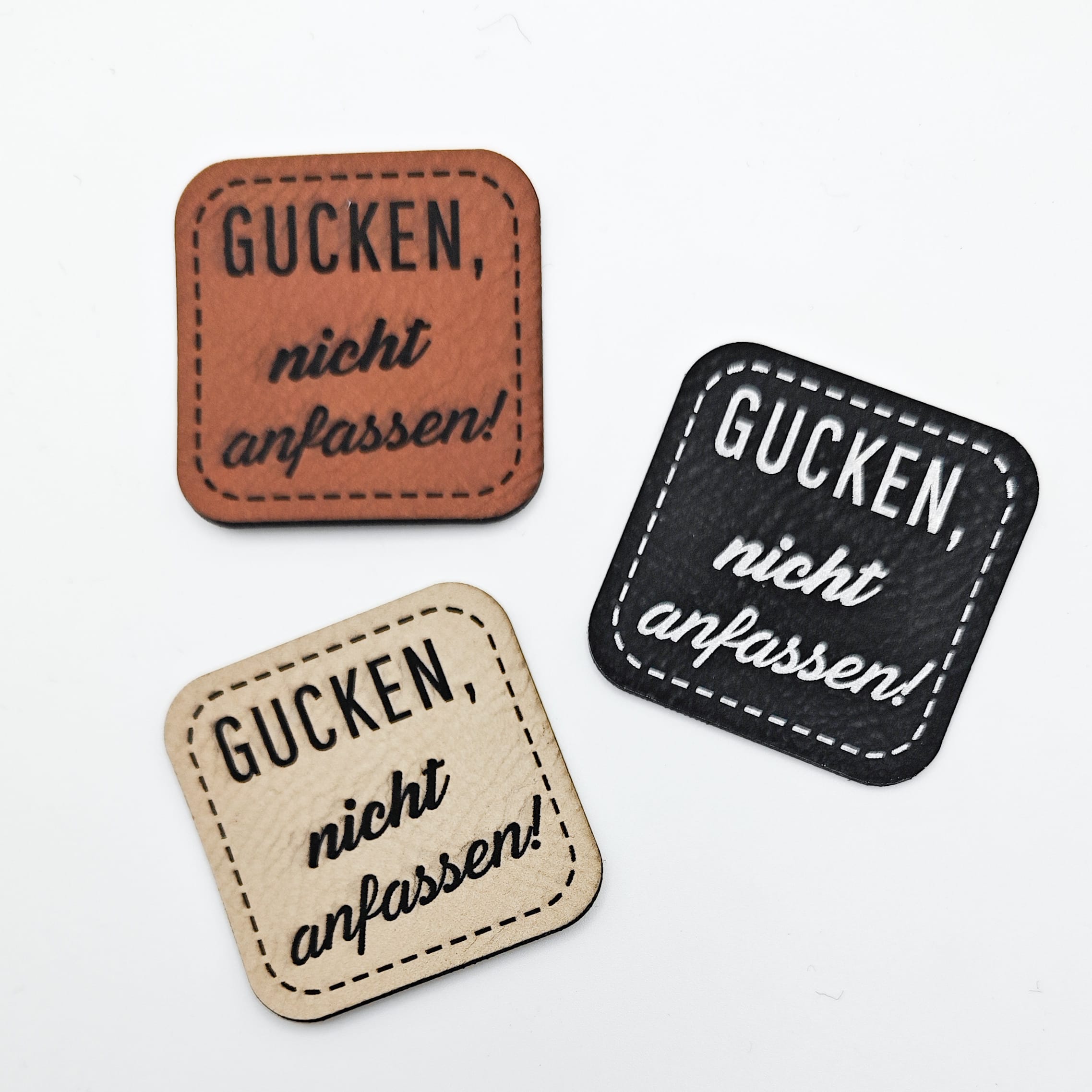Die Label sind aus hochwertigem 100% Kunstleder (PU) gefertigt und haben eine Größe von 4 cm x 4 cm, perfekt zum Aufnähen auf verschiedenste Kleidungsstücke. Das „Gucken, nicht anfassen!“ Kunstlederlabel bringt eine persönliche Note in jegliche DIY-Projekte und ist ein echter Hingucker. Durch das strapazierfähige Material bleiben die Labels lange schön und machen jedes selbstgemachte Kleidungsstück zu einem Unikat. Egal ob auf selbstgenähten Taschen, T-Shirts oder Jacken – die Kunstleder Labels sind vielseitig einsetzbar und verleihen jedem Stück das gewisse Etwas. Entdecken Sie jetzt die hochwertigen Kunstleder Label und werten Sie Ihre selbstgemachten Kreationen auf.