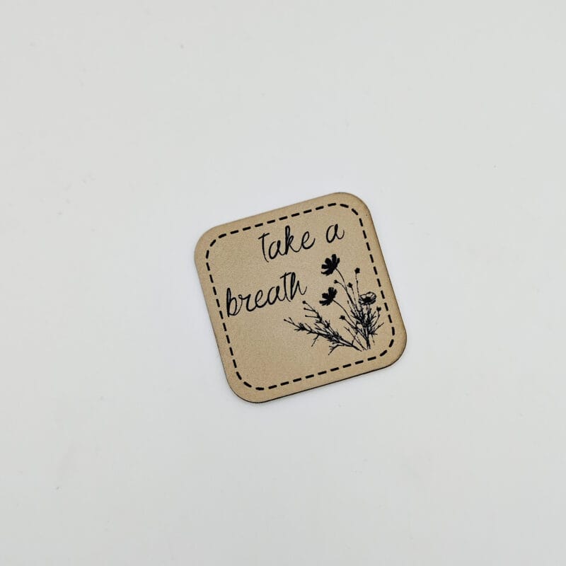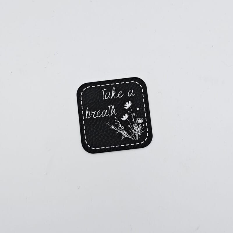 Du kannst die Kunstlederlabel „take a breath“ in verschiedenen Farben erwerben. Schwarz, Creme, Rustikal, Braun, grau.