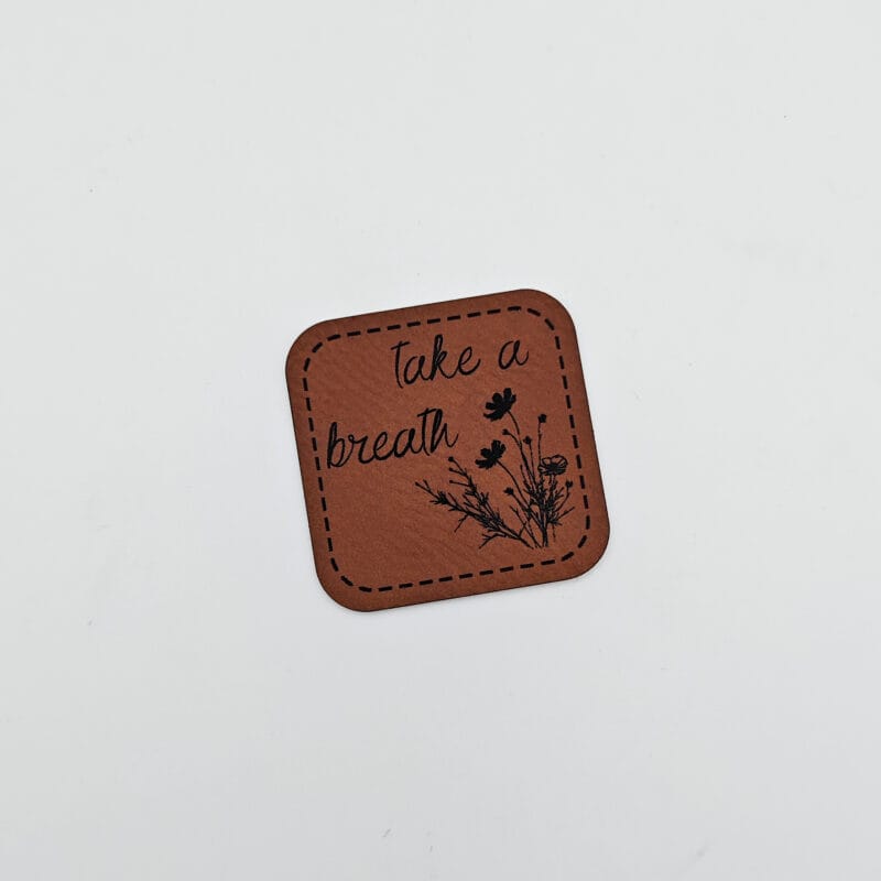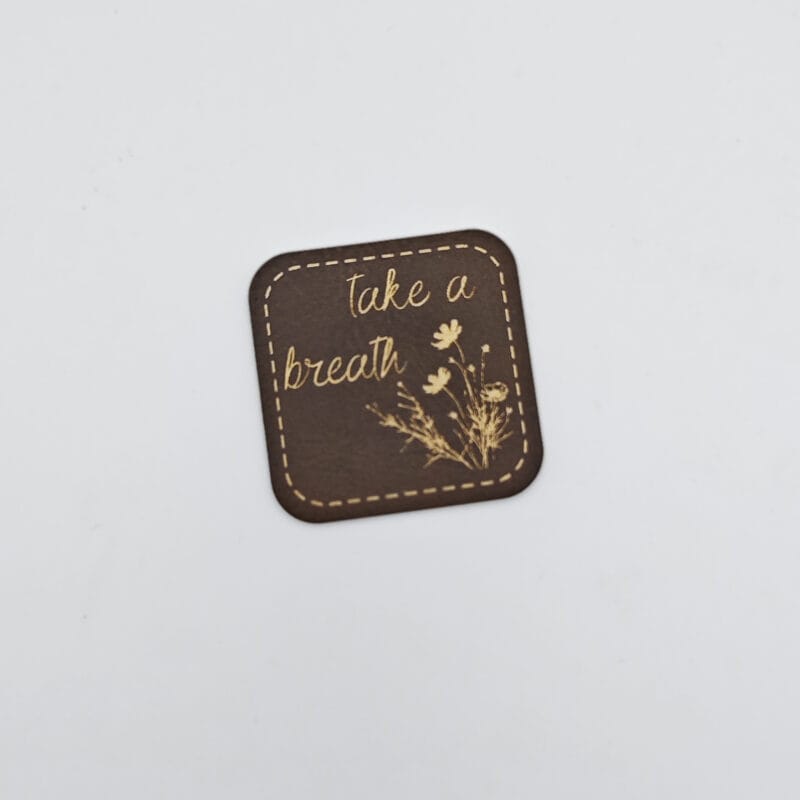 Kunstlederlabel „take a breath“ aus hochwertigem 100% Kunstleder (PU) gefertigt und haben eine Größe von 4 cm x 4 cm, perfekt zum Aufnähen auf verschiedenste Kleidungsstücke. Das „take a breath“ Kunstlederlabel bringt eine persönliche Note in jegliche DIY-Projekte und ist ein echter Hingucker. Durch das strapazierfähige Material bleiben die Labels lange schön und machen jedes selbstgemachte Kleidungsstück zu einem Unikat. Egal ob auf selbst genähten Taschen, T-Shirts oder Jacken – die Kunstleder Labels sind vielseitig einsetzbar und verleihen jedem Stück das gewisse Etwas. Entdecke jetzt die hochwertigen Kunstlederlabel und werte deine selbstgemachten Kreationen auf.