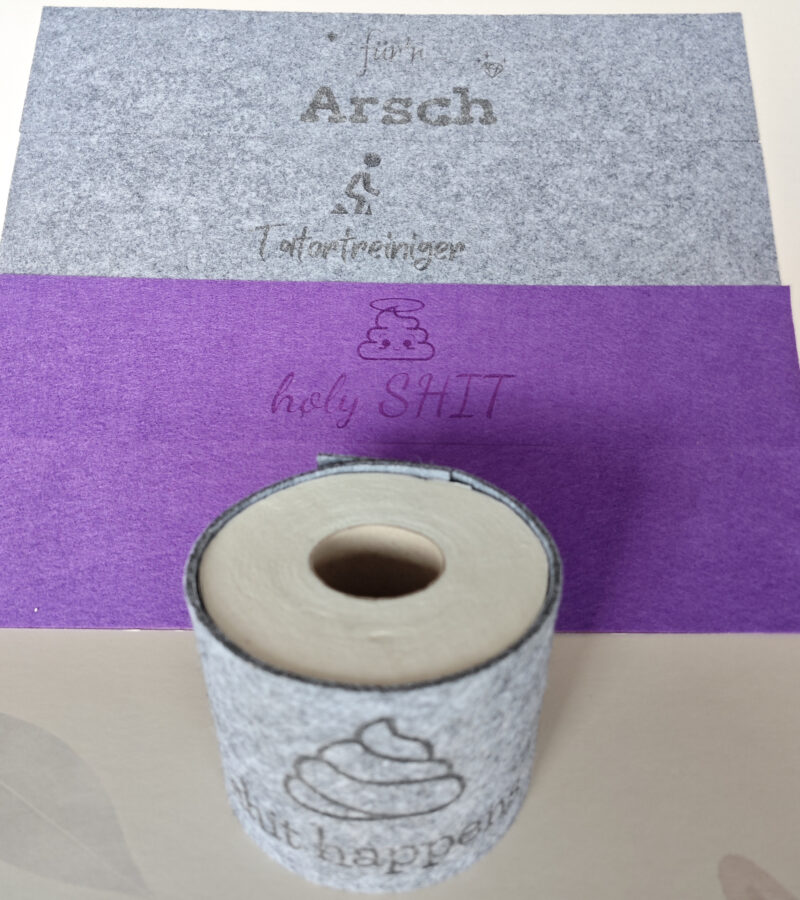 Die kannst die Klorollencover aus 3mm oder 4mm Filz lasern.