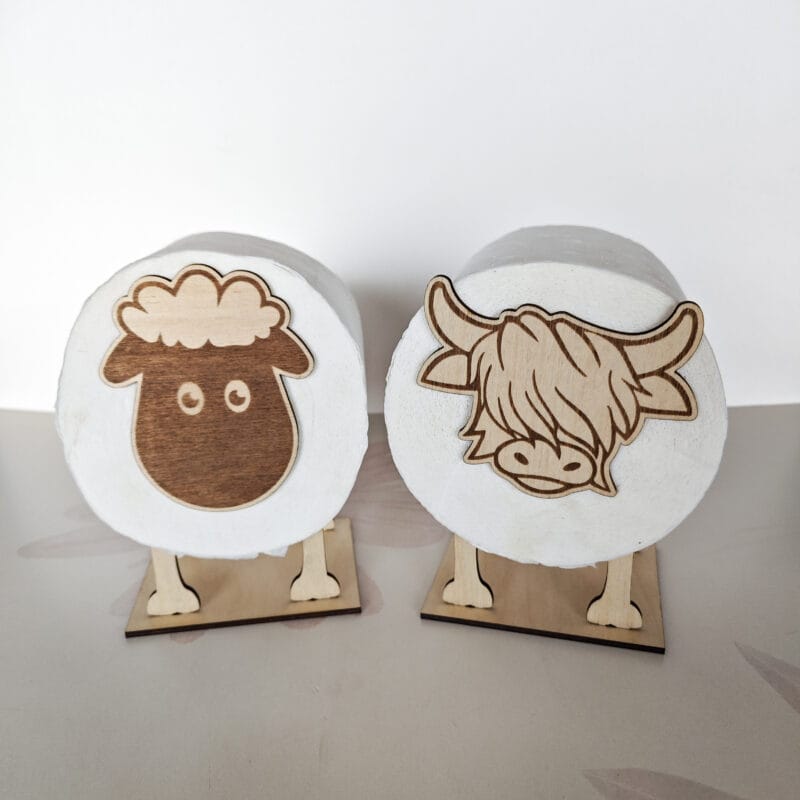 Die Laserdatei Klorollenhalter Schaf und Highland Kuh kannst du sowohl für deinen Laser, als auch für deinen Plotter nutzen und damit alle gängigen Materialien schneiden, die für dein Gerät geeignet sind